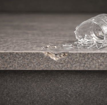 Hoci je extrémne odolný voči teplu, škvrnám a bežnému používaniu, silný bodový náraz môže povrch poškodiť.